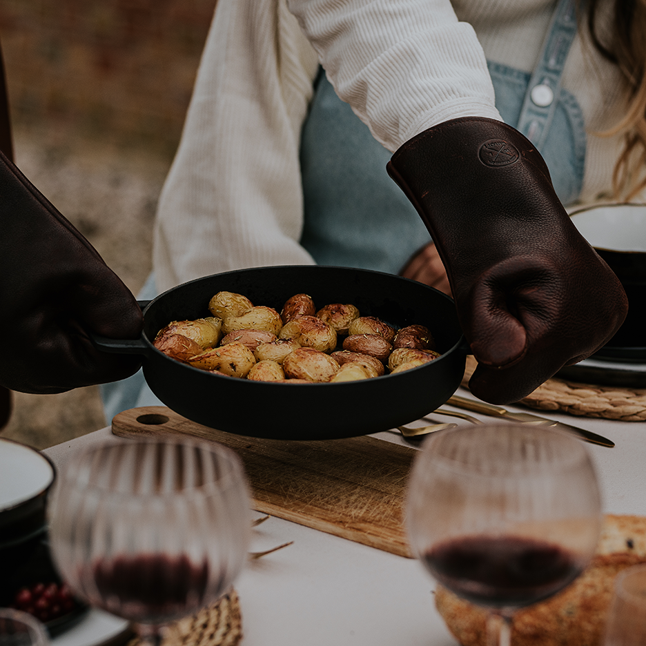 The perfect allrounder. This Double Handle is made from factory waste and is 100% recycled. A perfect allrounder. No matter if you choose induction or bbq. We can (double) handle every heat source. The Cast Iron range has a super strong enamel coating and can be recognized by the bit more subtle design and its bold and bright three colours: red, orange, and black. More good news: the lid of the matching Dutch Oven can be used on the fry pan. That’s nice, right? Last, but not least, at the bottom, there’s a stamp to remind you that you’re cooking with a 100% recycled item. Also available in 28cm (matching with the 28 cm Enamelled Cast Iron Dutch Oven).